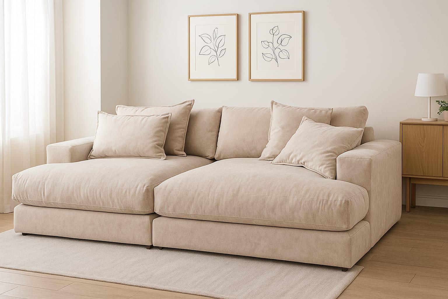 Telas anti-manchas y anti-desgarros. Resistente a mascotas. Asientos en placa de alta densidad y respaldos en vellón. Los almohadones son con funda que se pueden quitar para lavar (primer lavado con agua fría).